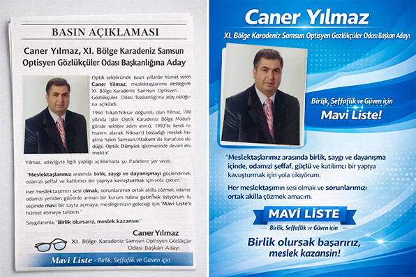 Caner Yılmaz, XI. Bölge Karadeniz Samsun Optisyen Gözlükçüler Odası Başkanlığına Aday