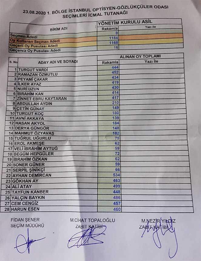 İstanbul Optisyen ve Gözlükçüler Odası genel kurulu 22- 23 Ağustos 2020 tarihlerinde Etiler lisesinde yapıldı.