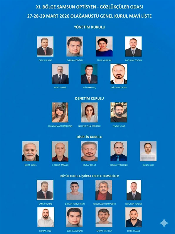 Samsun optik sektörünün geleceğinin oylanacağı XI. Bölge Samsun Optisyen-Gözlükçüler Odası Olağanüstü Genel Kurulu için geri sayım tamamlandı. 28-29 Mart tarihlerinde gerçekleştirilecek seçimler öncesinde, Caner Yılmaz liderliğindeki Mavi Liste, saha çalışmalarını büyük ölçüde tamamlayarak seçim gününe hazır hale geldi.