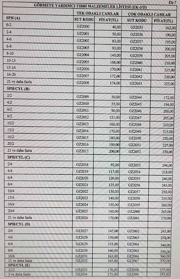 Tebliğ değişikliğine göre SUT’un 3.3.3.A maddesine yeni bir fıkra eklendi. Buna göre, göz sağlığı ve hastalıkları uzman hekimleri veya bu alanda ihtisas yapan asistan hekimler tarafından aynı reçetede hem uzak hem de yakın gözlük yazılması hâlinde, hasta tercihine bağlı olarak yeni reçete düzenlenmeden çok odaklı gözlük verilmesi mümkün olacak.