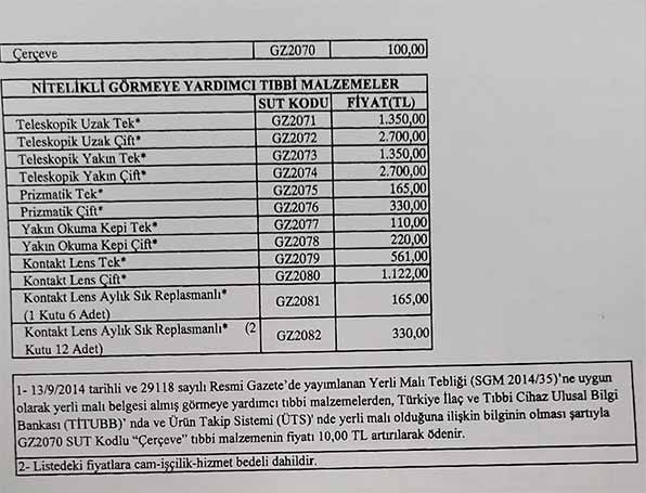 Ayrıca 18 yaş ve altındaki hastalarda uzak ve yakın gözlüğün gerekli olduğu durumlarda gözlüğün hekimin reçetesine uygun olarak temin edileceği ifade edildi.